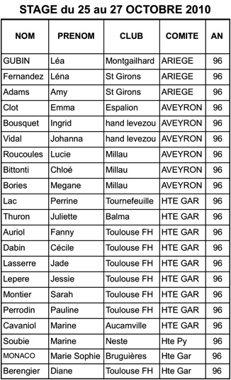 Stage régional 96F de Toussaint 2010